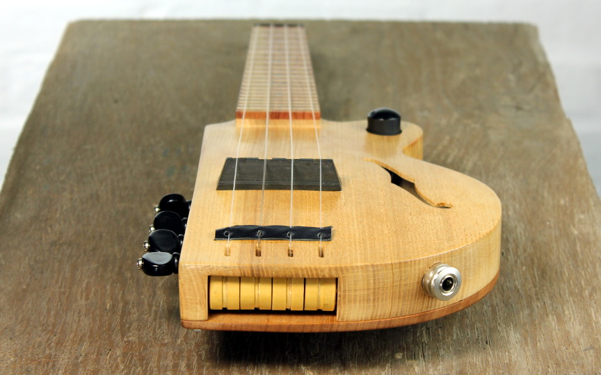 instrument uke killer-uke stringed other kits tronics about contact legal Qkulele stands for quarter ukulele. The german word for semi-acoustic is halb-akustik (half-acoustic). So this is a half half-acoustic = quarter ukulele. The backplate hinges open to allow restringing the instrument.
